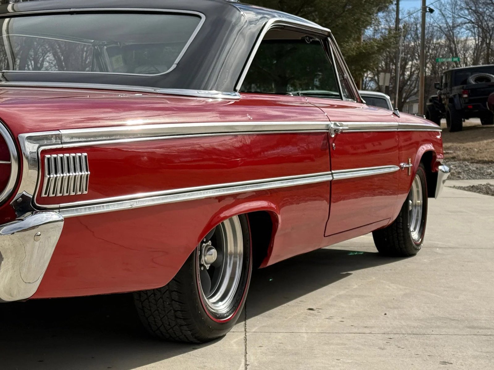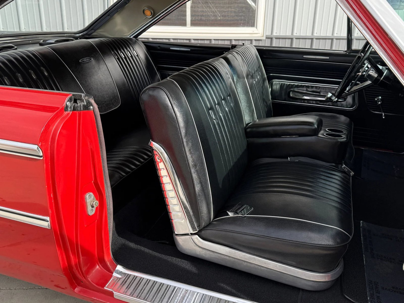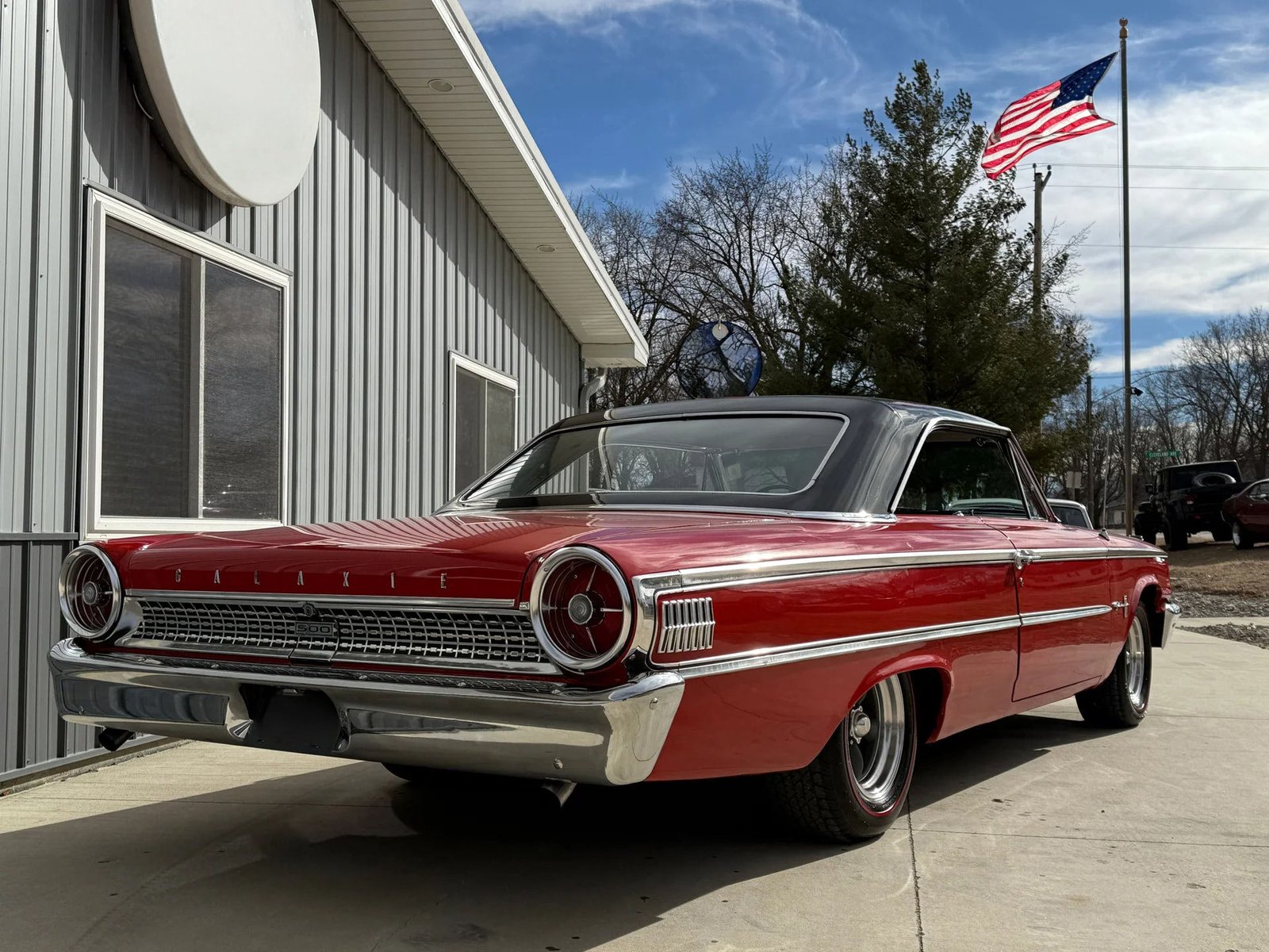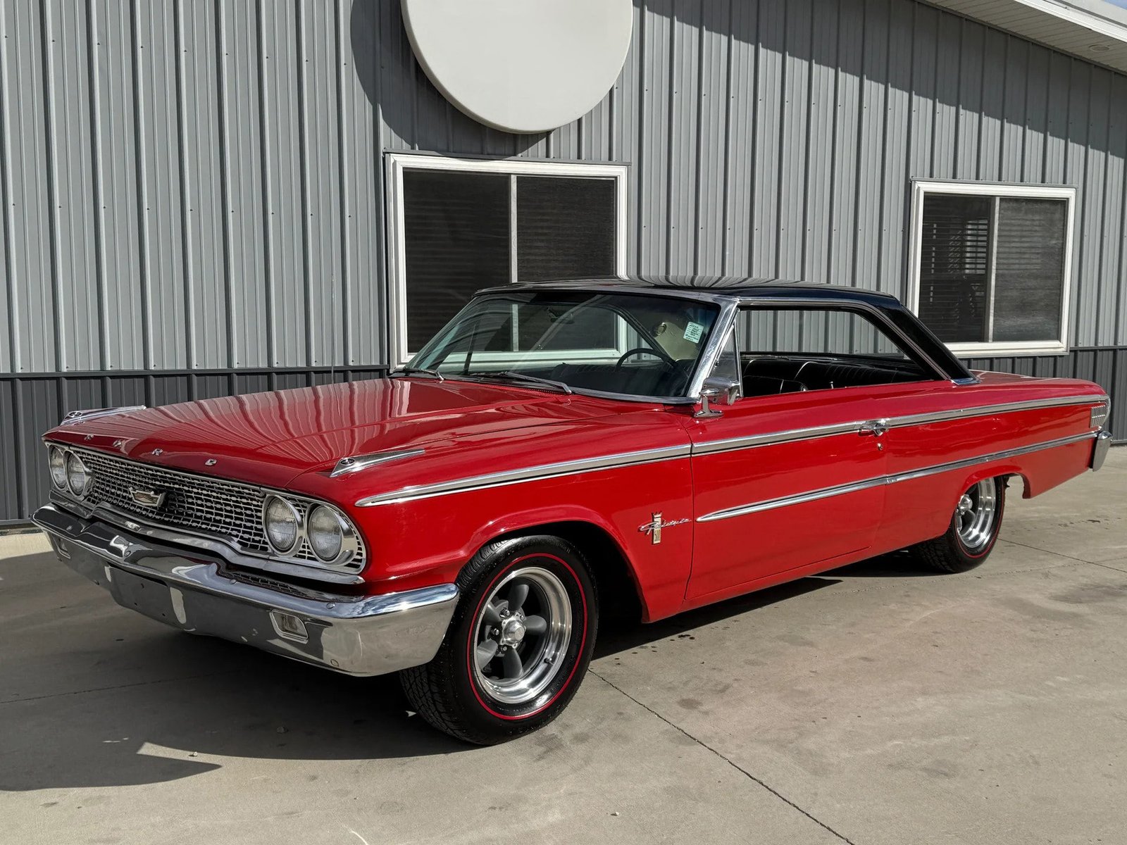 A rare 1963 Ford Galaxie 500 Fastback believed to be powered by a 390ci service replacement V8 block. It features a C4 3-speed automatic transmission and a Ford 9-inch rear end. The exterior shines with great-looking red paint and redline radial tires. The black bench seat interior is in great shape and the car is equipped with air conditioning and power steering. A very solid body and undercarriage make this a fantastic driver.