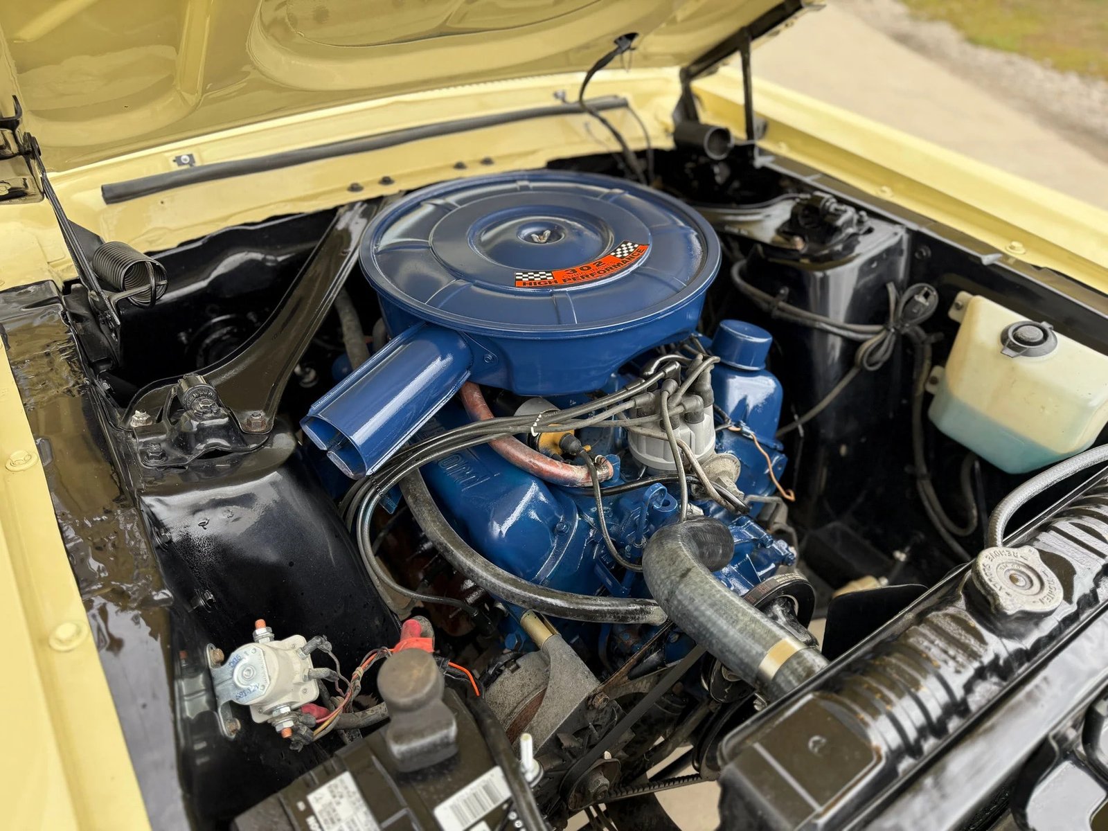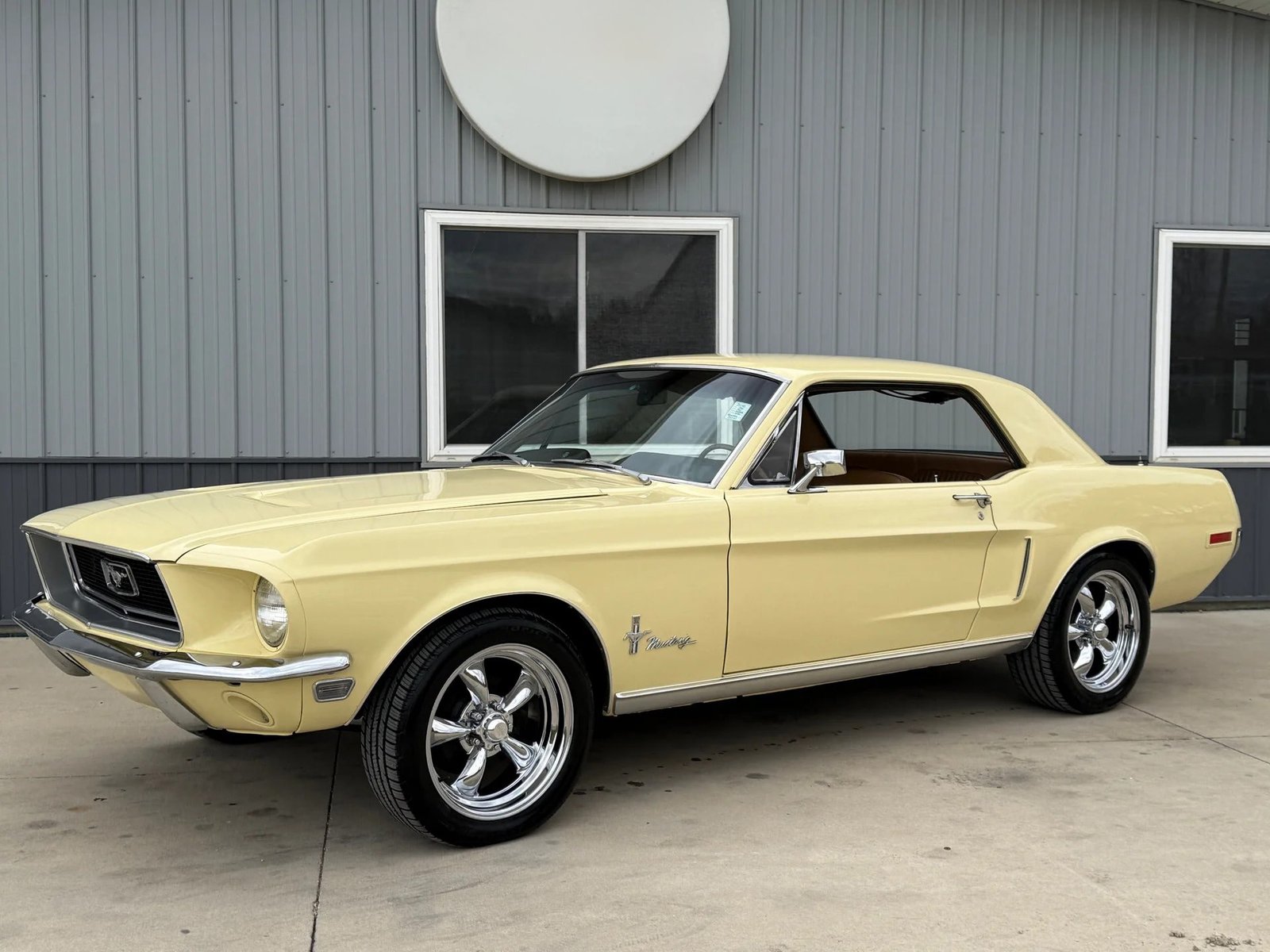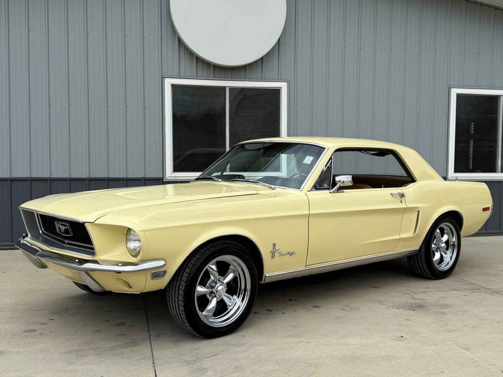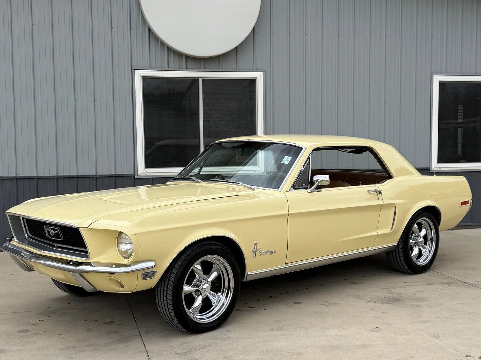 This beautiful 1968 Mustang Coupe offers a fantastic blend of originality and restoration, showing just 34,752 miles on the odometer. It retains its numbers-matching 302ci V8 and date-code correct C4 automatic transmission. The body has been repainted in its original Meadowlark Yellow with very nice jambs, while the Medium Saddle Crinkle Vinyl interior appears almost entirely original and in excellent shape. Updates include new chrome 5-spoke wheels, new brightwork, and a brand new battery.