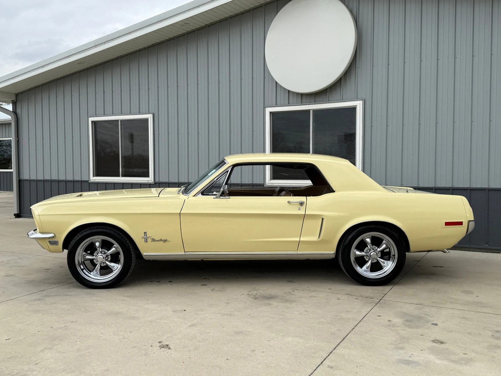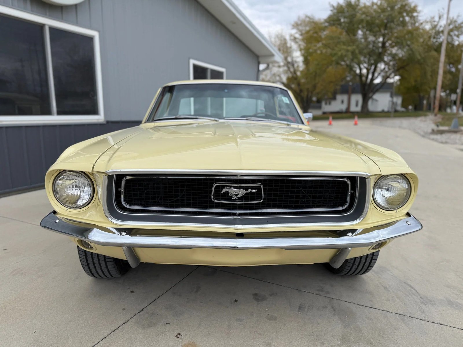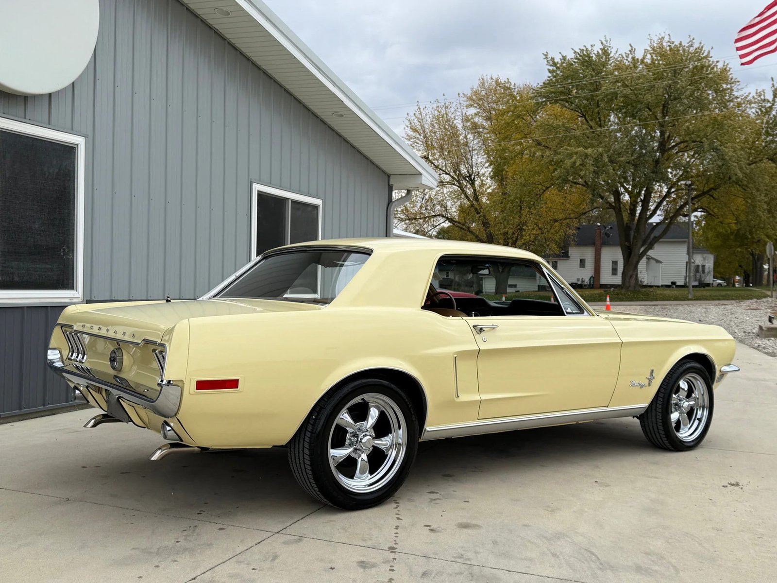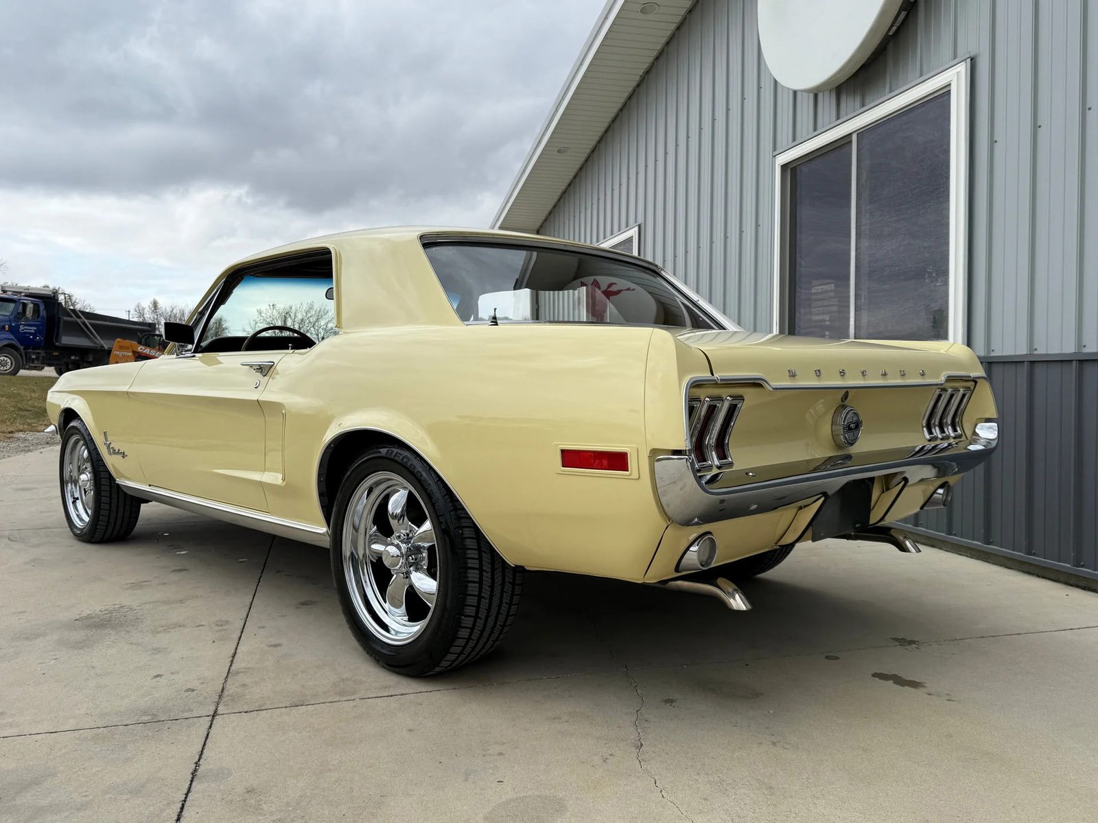 This beautiful 1968 Mustang Coupe offers a fantastic blend of originality and restoration, showing just 34,752 miles on the odometer. It retains its numbers-matching 302ci V8 and date-code correct C4 automatic transmission. The body has been repainted in its original Meadowlark Yellow with very nice jambs, while the Medium Saddle Crinkle Vinyl interior appears almost entirely original and in excellent shape. Updates include new chrome 5-spoke wheels, new brightwork, and a brand new battery.