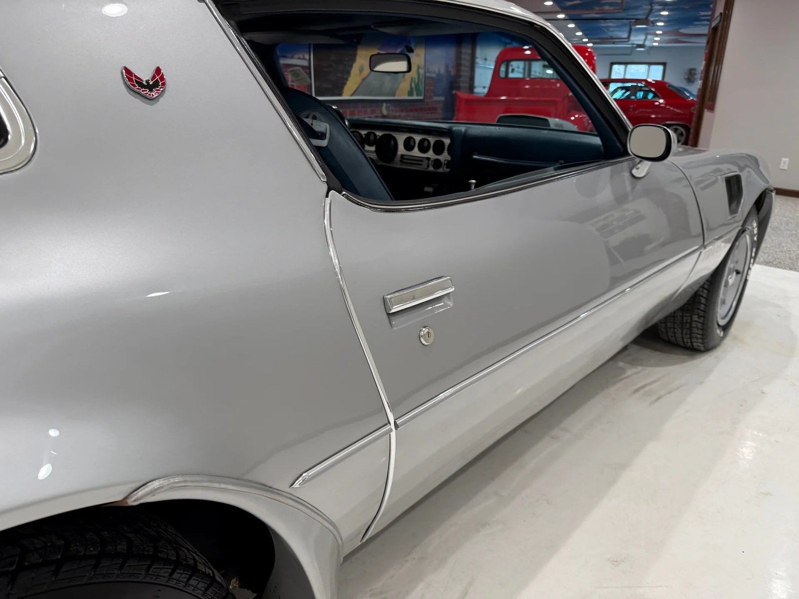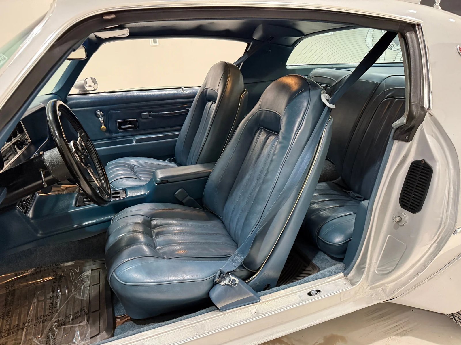A beautiful 1976 Pontiac Trans Am featuring its numbers-matching 400ci V8 engine and TH350 automatic transmission. The exterior is finished in a gorgeous Sterling Silver, complemented by correct honeycomb wheels and a clean original undercarriage. Inside, you’ll find a very clean blue bucket seat interior with factory tachometer and gauges. This Trans Am offers a great mix of originality and quality restoration, complete with ice-cold factory air conditioning, power steering, power front disc brakes, and a GM 10-bolt Posi rear end. It shows 90,988 miles and drives great.
